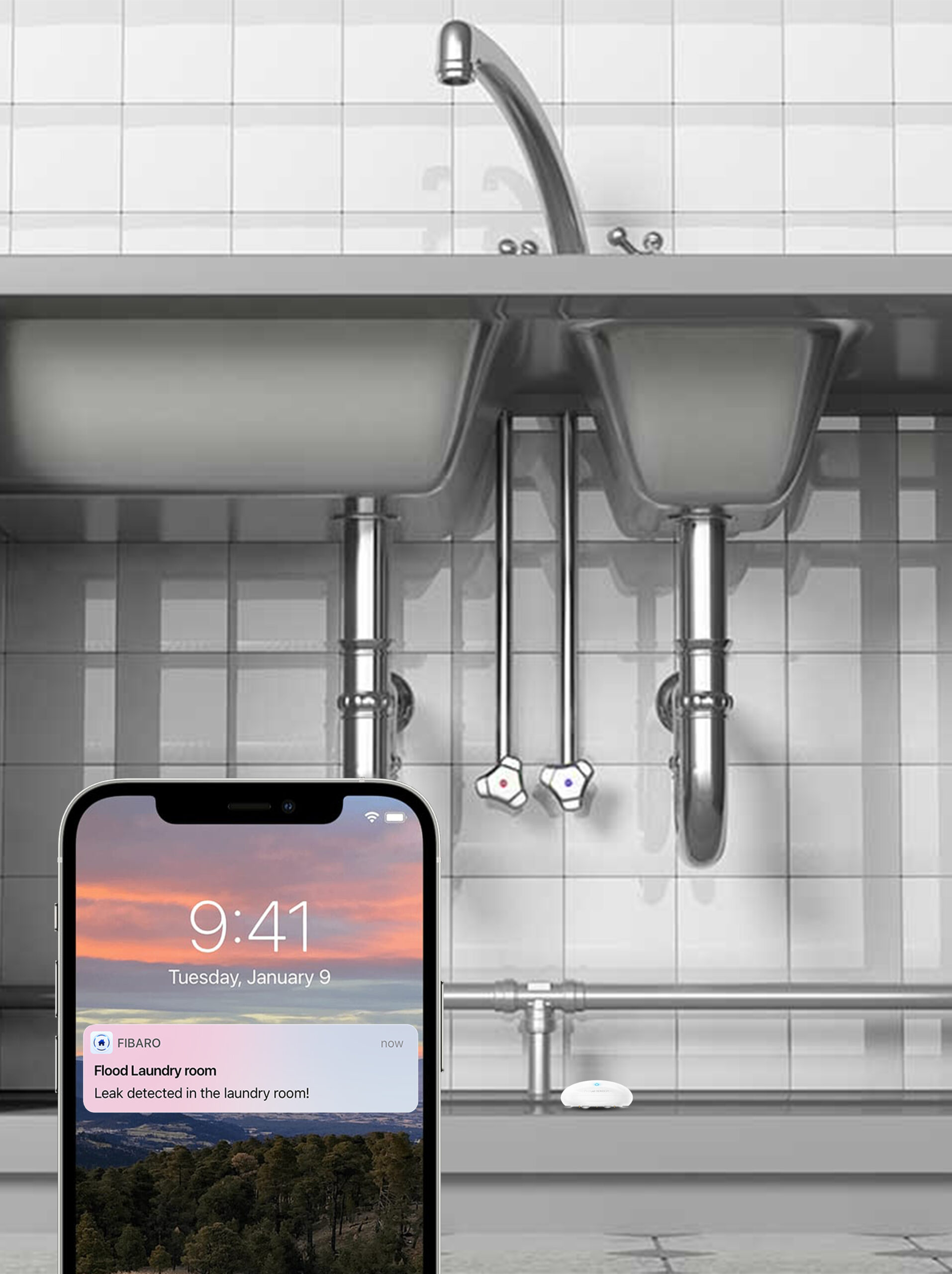 A blocked drain and a flooded floor is a nightmare any day! Eleganté’s flood sensor is always vigilant and keeps your home safe. The system detects potential leaks in the bathrooms, blocked drains in the laundry room or kitchen, and sends an instant alert to your devices. Go the extra mile and equip your system with electrovalves. Upon detection of a leak, the system will close off the water supply and minimize damages. You don’t just protect your homes but you also save a lot of water.